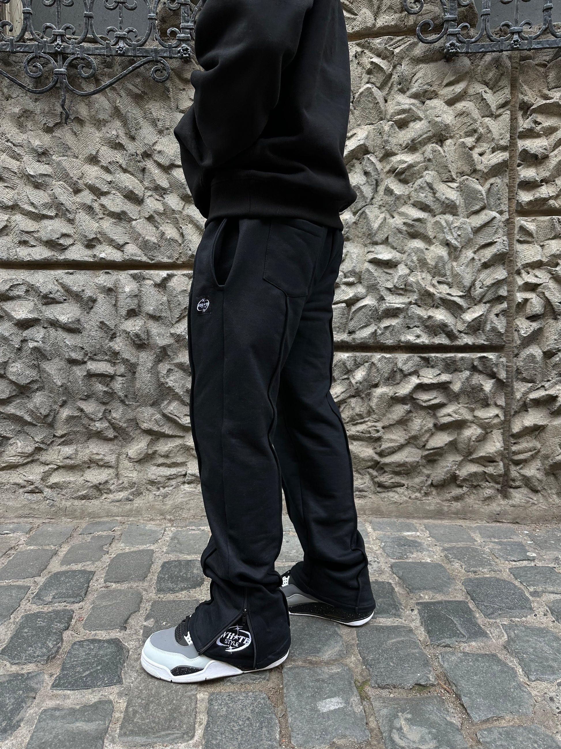 Pantalón de Buzo Flared Negro Hombre - 100% Algodón - WhiteStyle